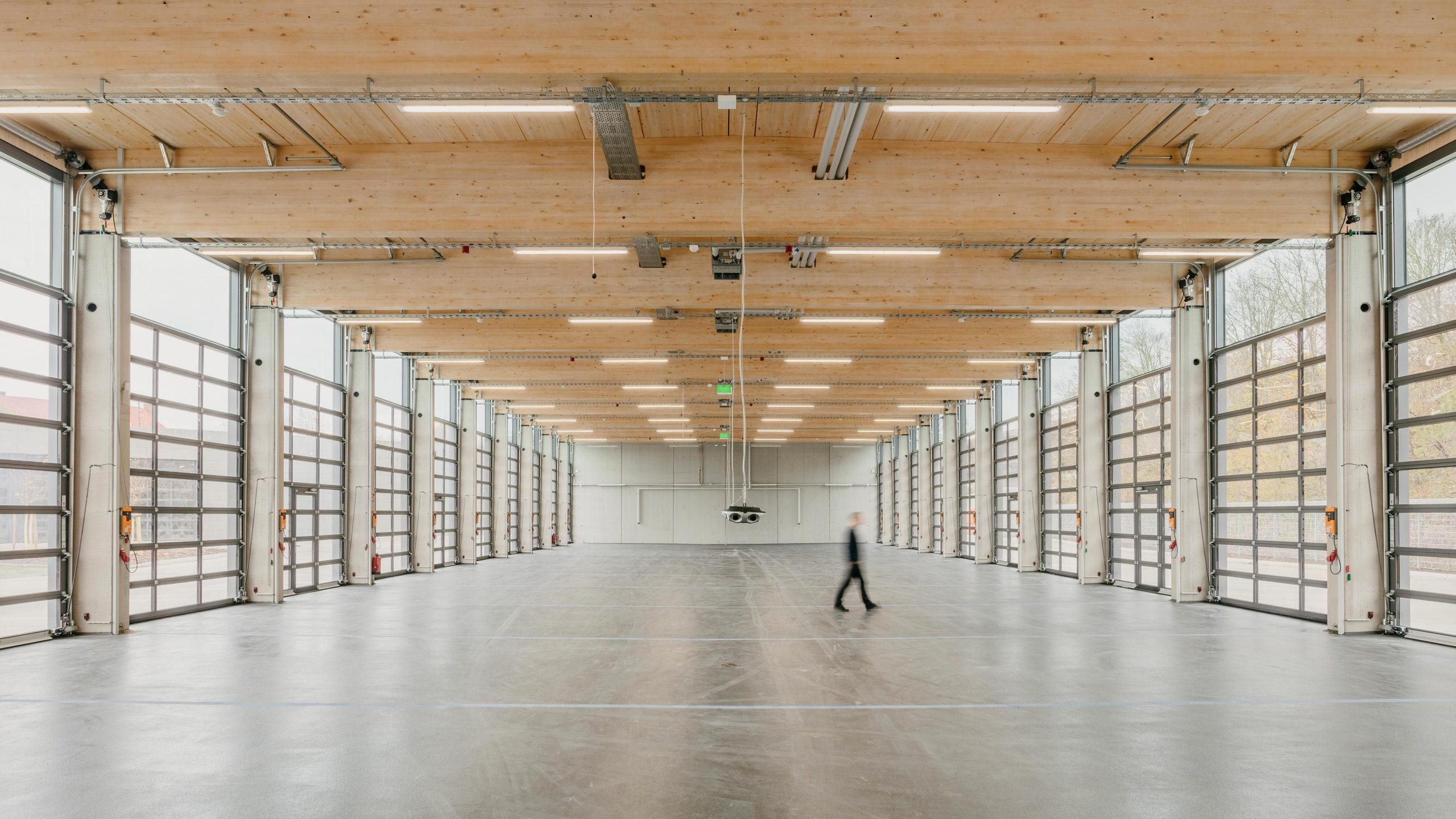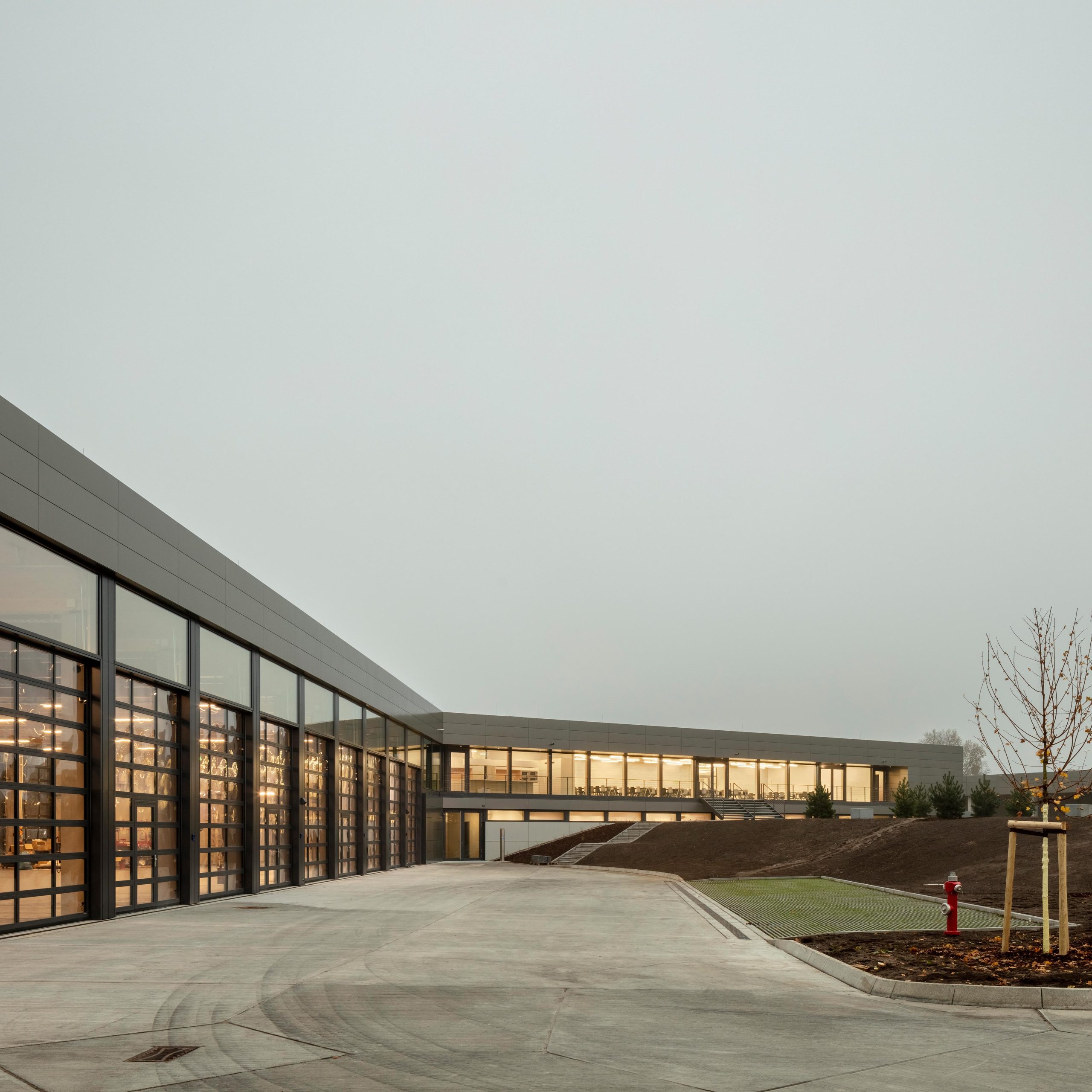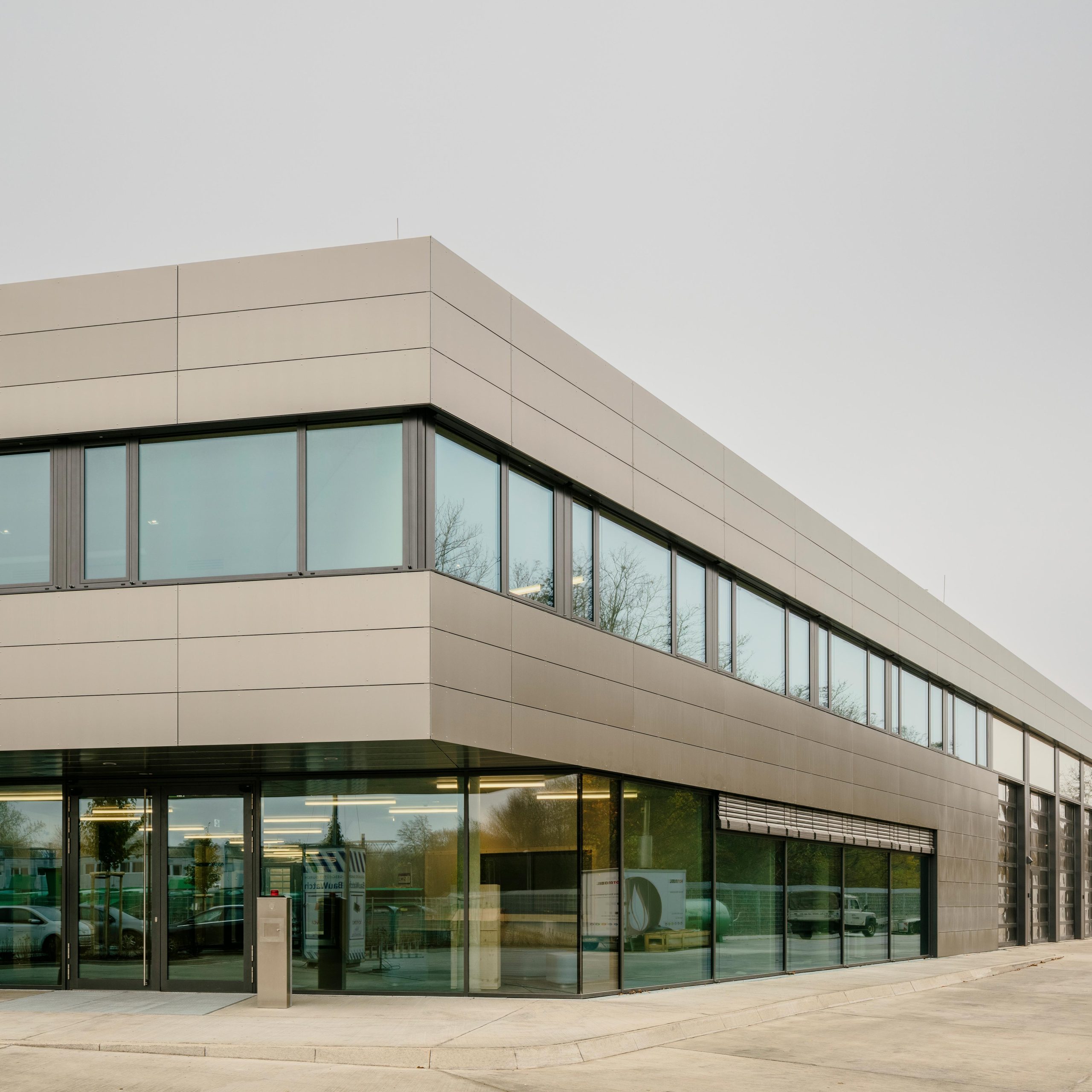 Für diesen stark lärmbelasteten Standort wurde mit der Setzung von zwei winkelförmigen Gebäudeteilen um eine grünen Mitte eine Lösung entwickelt, die einen doppelten Nutzen erfüllt: Einerseits schützt sie die angrenzenden Wohngebiete wirksam vor den Lärmemissionen des Recyclinghofs, andererseits schafft sie für die Mitarbeiter des Betriebshofs einen ruhigen Arbeitsort mit hoher Erholungs- und Aufenthaltsqualität.