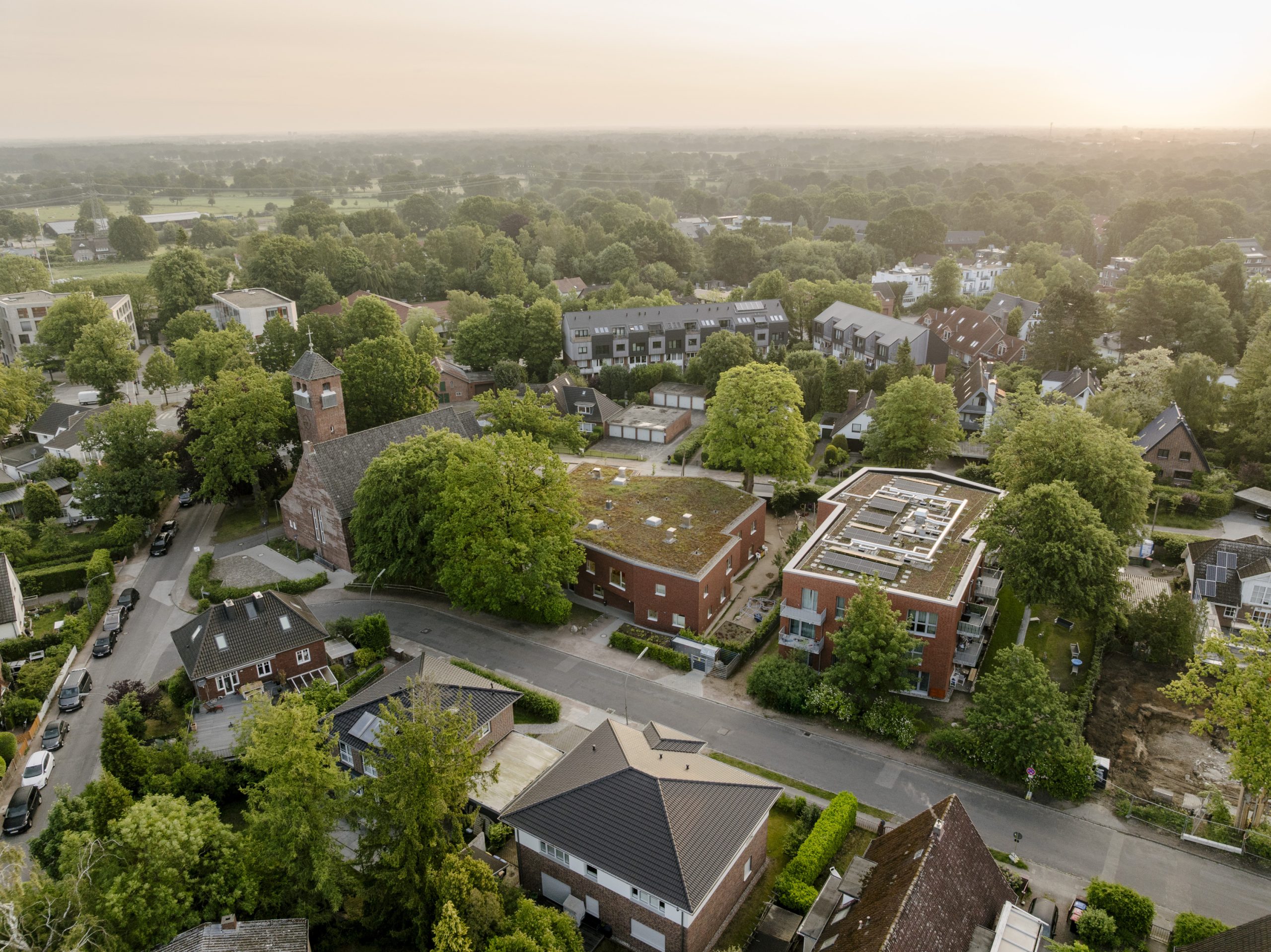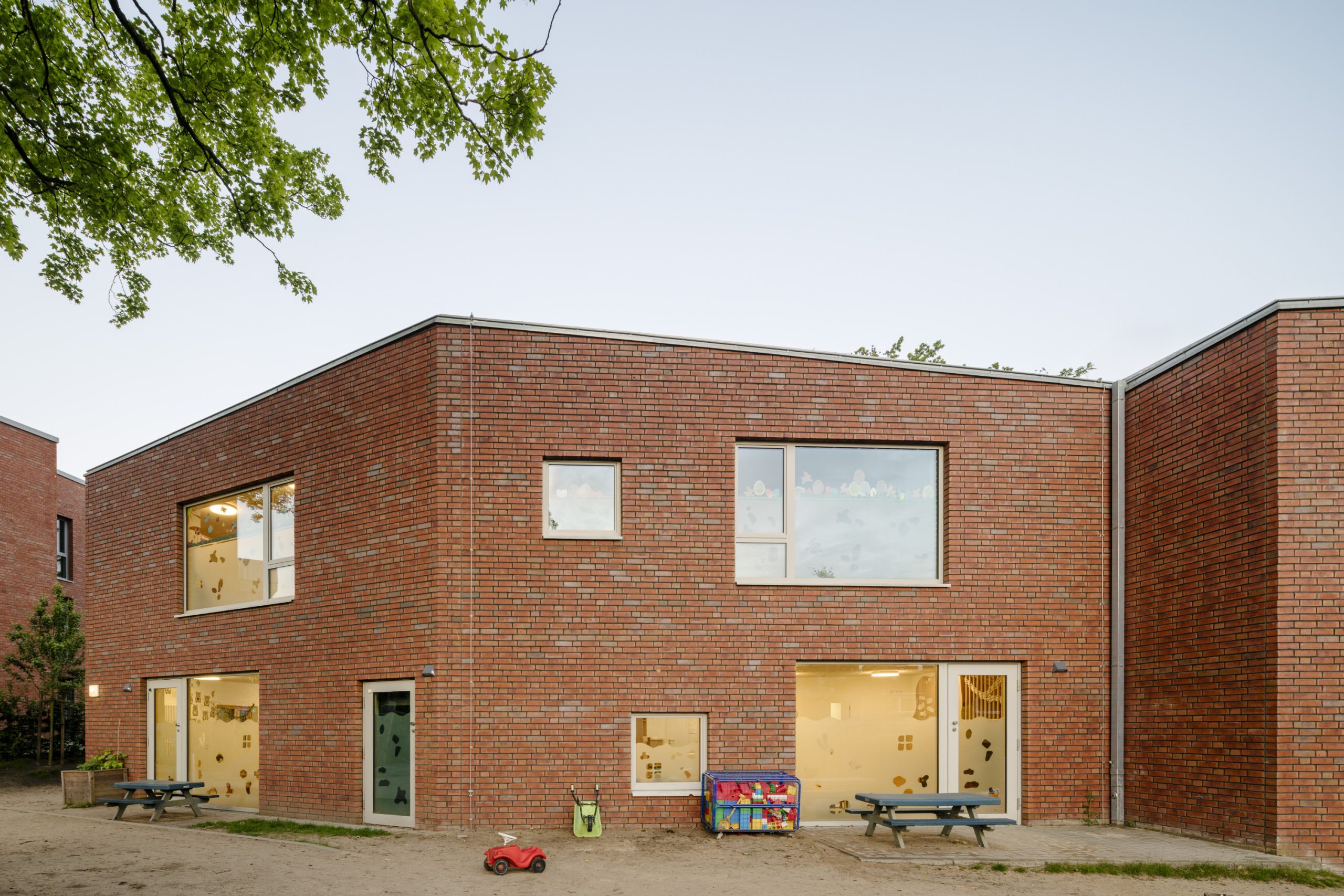 Auf dem Grundstück der Evangelischen Kirchengemeinde Sülldorf-Iserbrook im Nordwesten von Hamburg wird die 1956 erbaute St.Michaelskirche um zwei solitäre, kompakte Baukörper ergänzt, die das Gemeindehaus mit Kita sowie einen Wohnungsbau beinhalten.