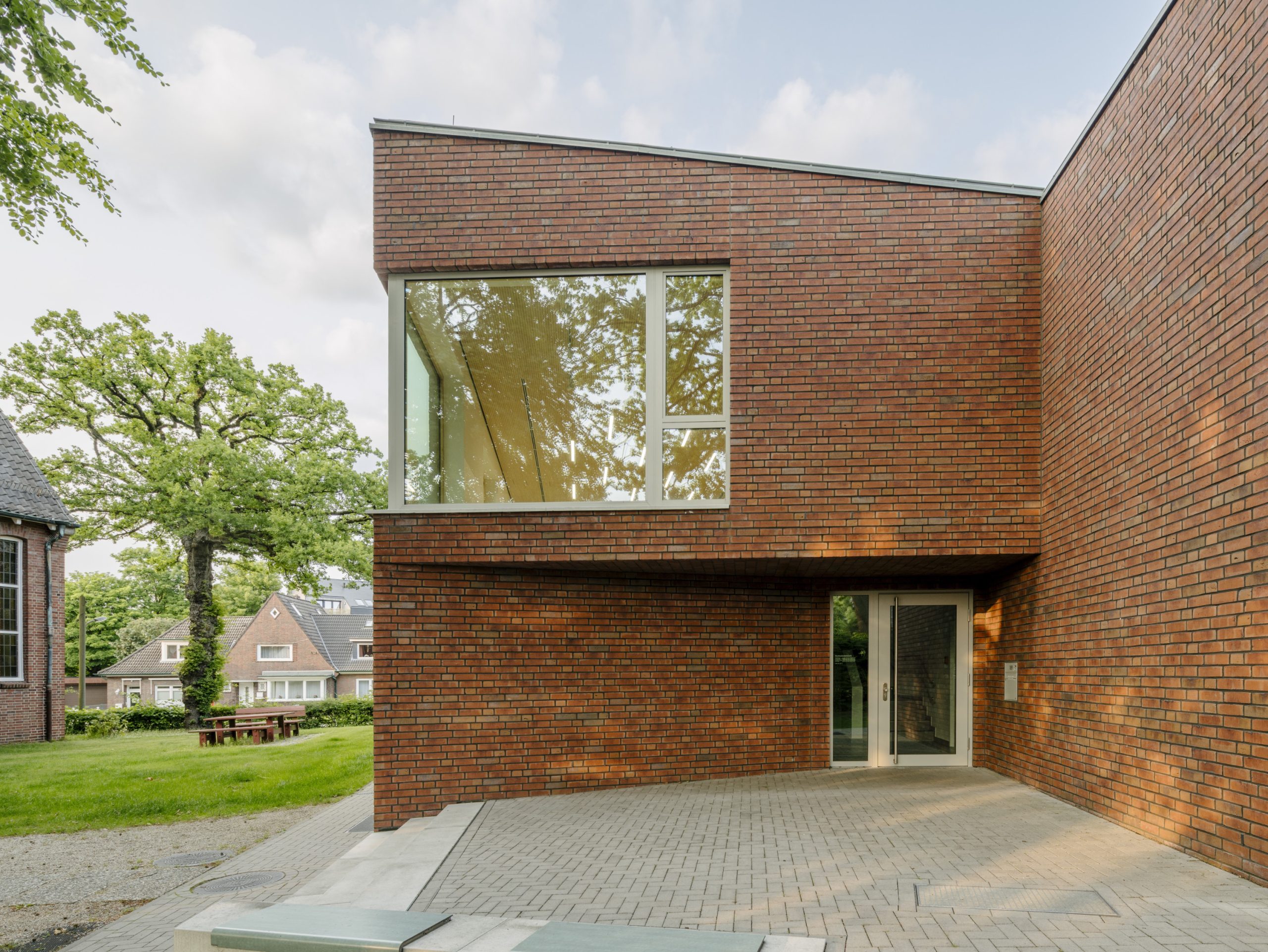 Die inhaltlich und funktional klar voneinander getrennten Teile bilden im Gesamtensemble mit der Kirche eine harmonische Einheit. Die Fassadengestaltung nähert sich in Materialität und Farbgebung der Kirche an, ohne seine Eigenständigkeit zu verlieren.